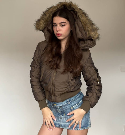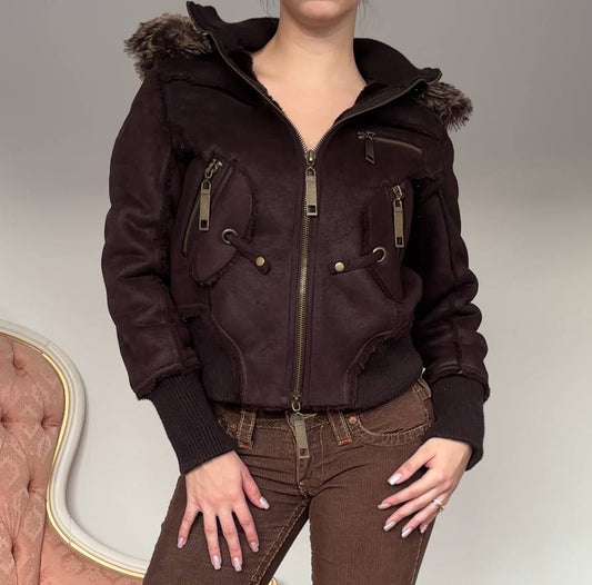 Abercrombie and Fitch fur hoodie coat zip-jacket