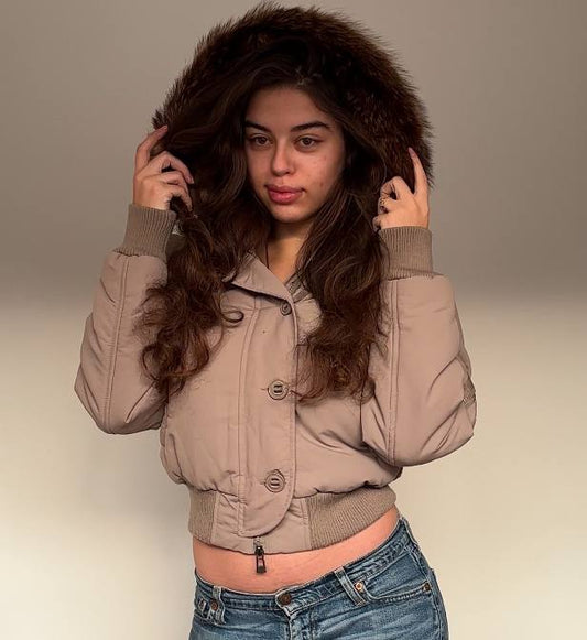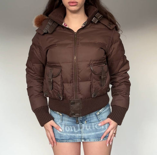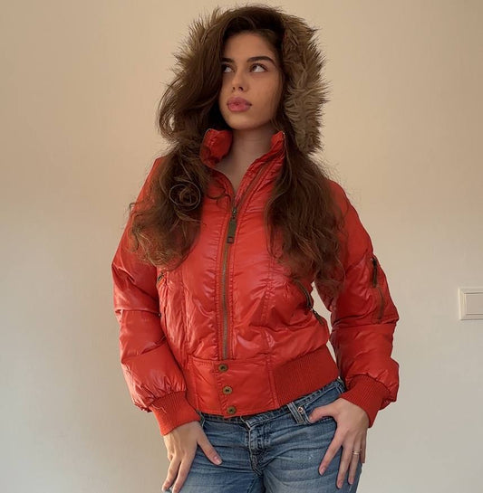 Italian puffer coat zip-jacket bomber with fur hood