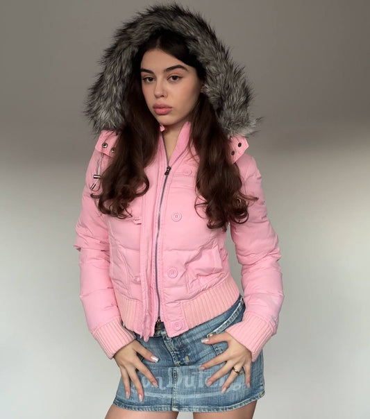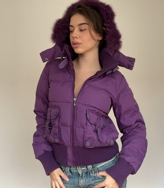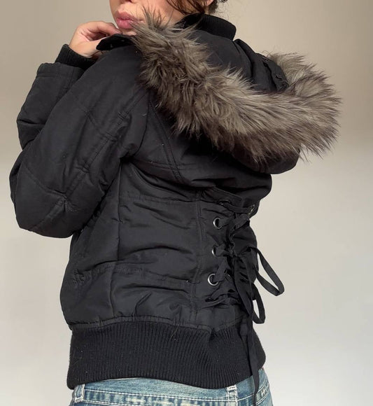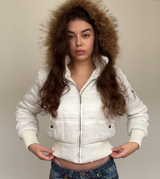 Abercrombie and Fitch puffer coat zip-jacket bomber with fur hood