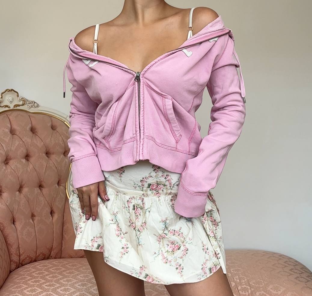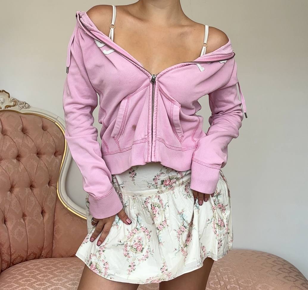 Abercrombie and Fitch hoodie zipper top hooded zip-hoodie baby pink winter fairy vintage y2k coquette