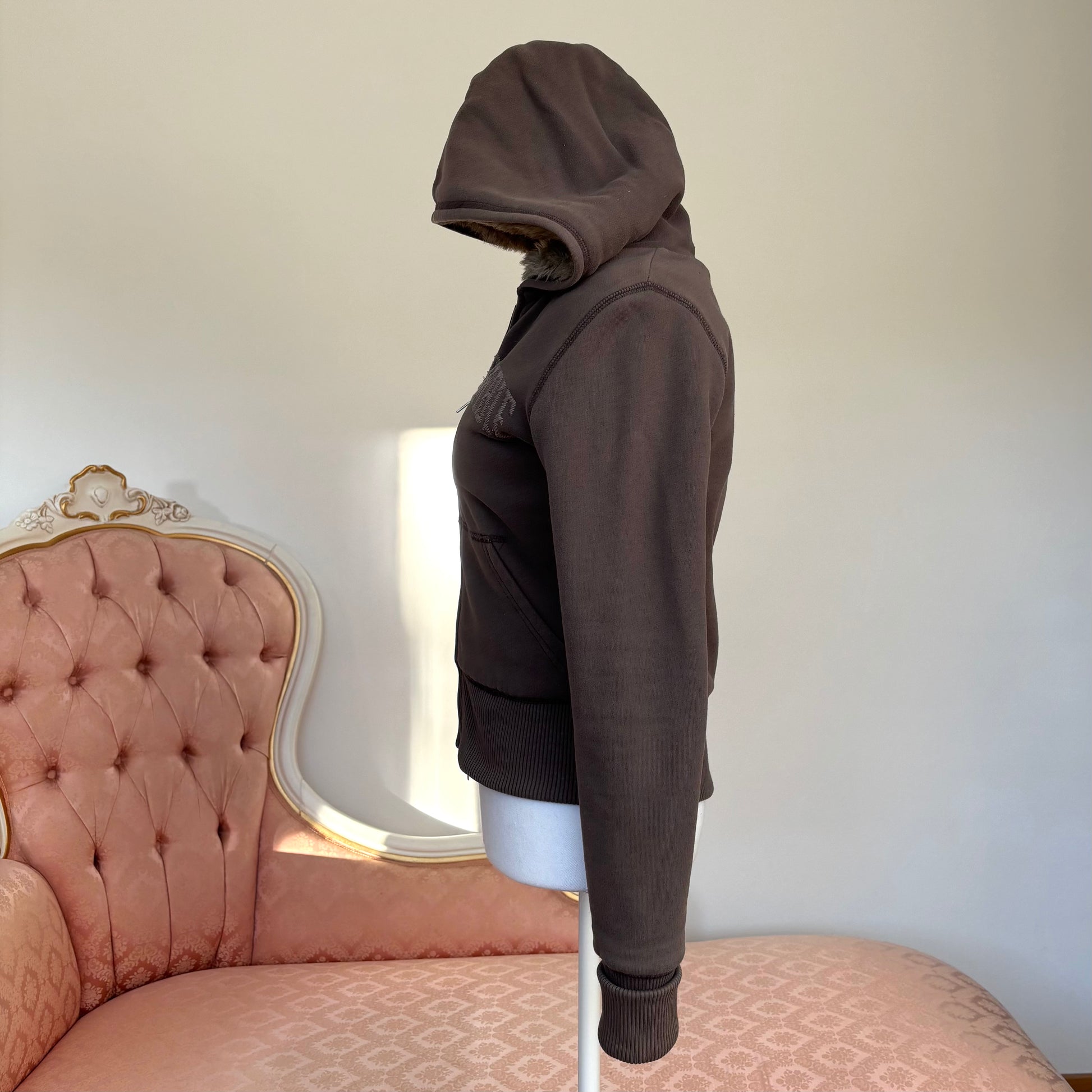 Abercrombie and Fitch jumper sweater hoodie with fur hood in chocolate brown