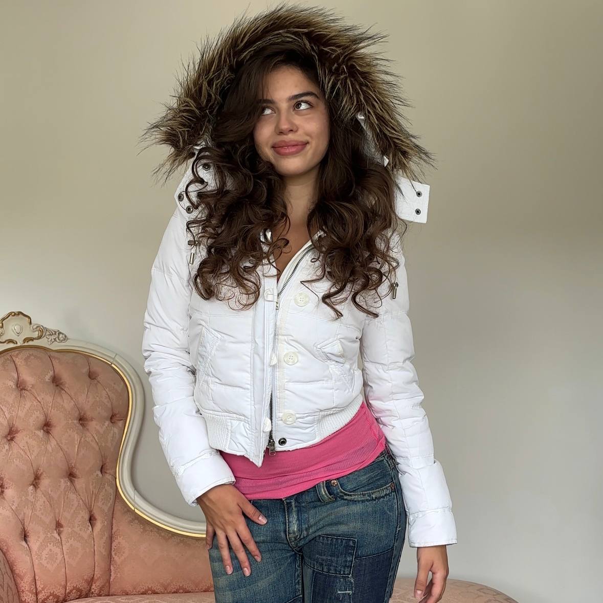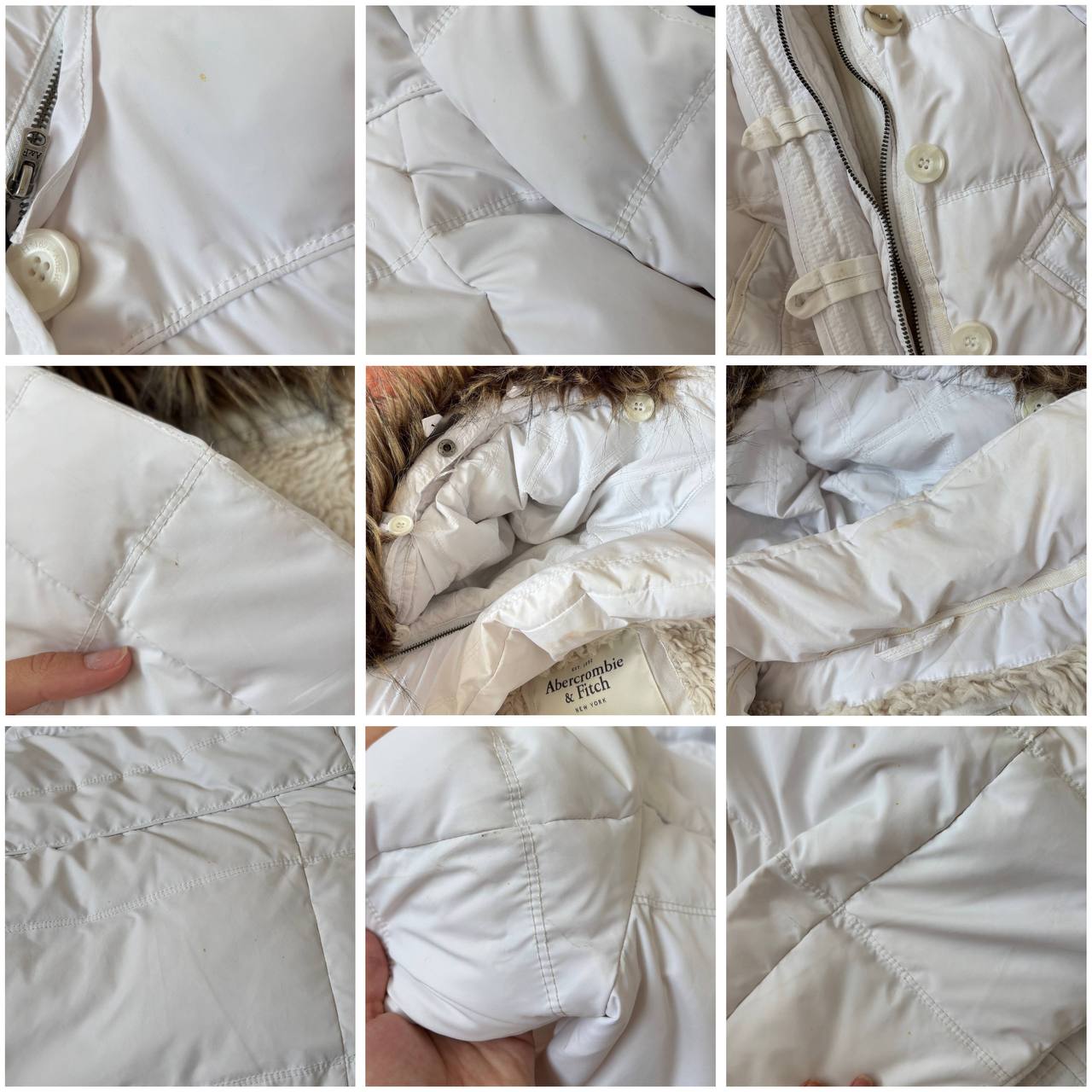 Abercrombie and Fitch puffer coat zip-jacket bomber with fur hood in white vintage y2k