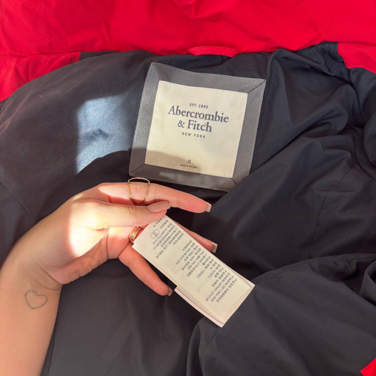 Abercrombie and Fitch puffer coat zip-jacket bomber with fur hood in red vintage y2k