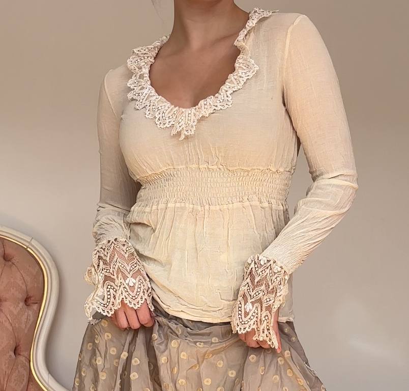 Celyn B. top blouse rouches asymmetrical mesh lace embroidered fairy Italian summer mermaidcore vintage y2k coquette