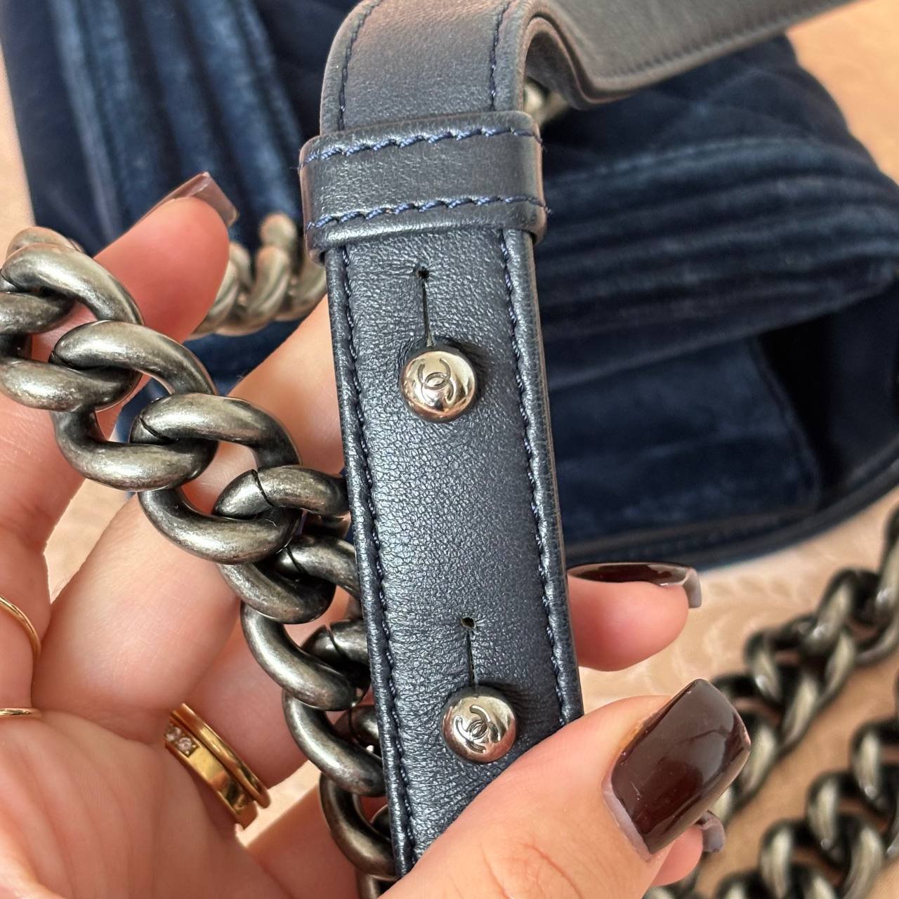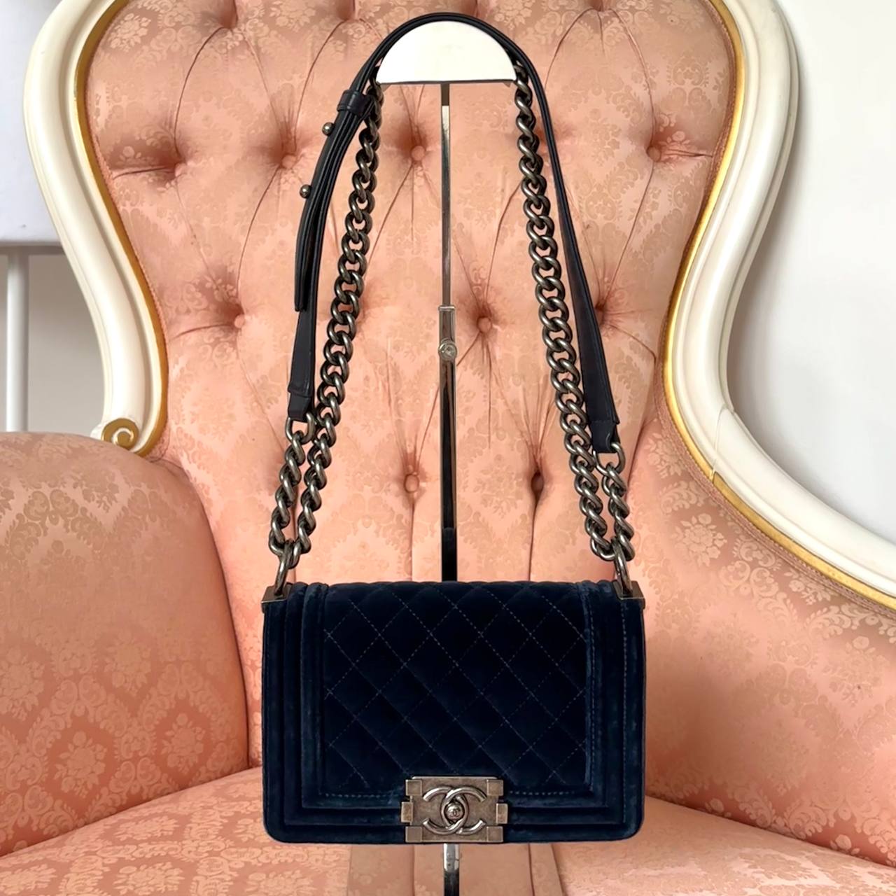 💋 insanely rare Chanel velvet navy bag with dark silver metal strap model Le Boy