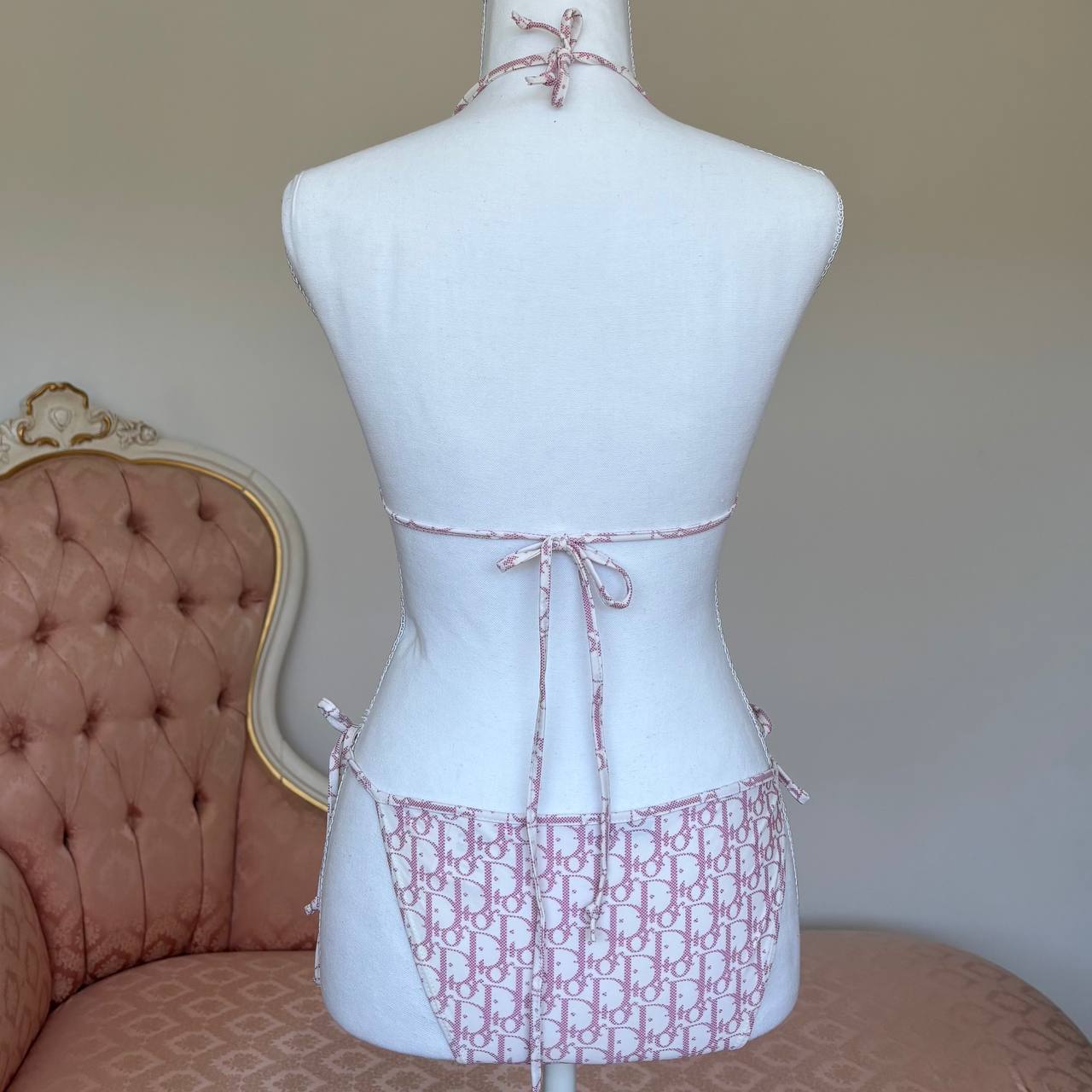 🎀 iconic Dior by Galliano swimwear summer triangle bikini set monogram baby pink