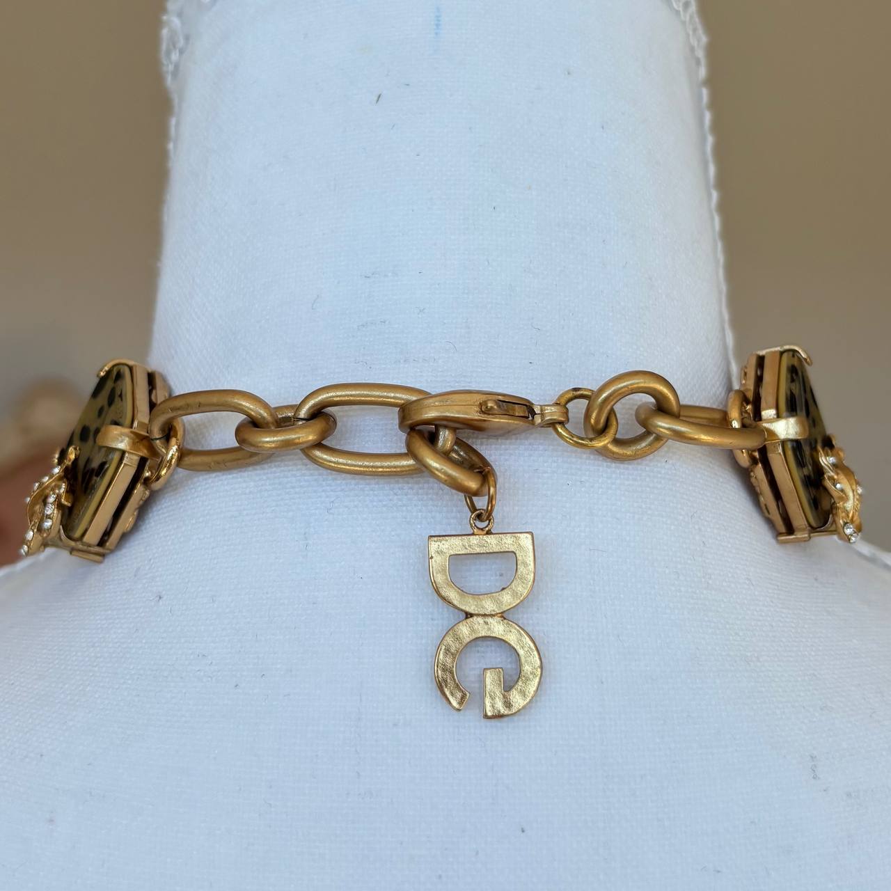 Dolce Gabbana necklace golden red rose petals leopard and yellow crystals jewellery y2k 2000s embellished
