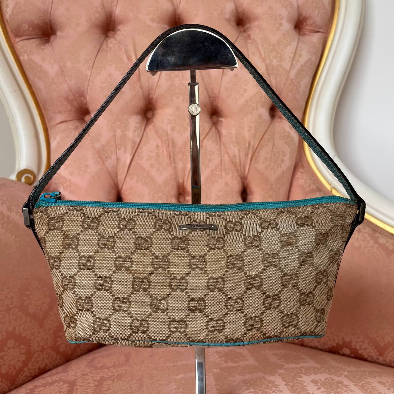 Gucci bag Boat pochette monogram handbag mini cloth canvas brown blue with logo streetwear 2007 y2k rock chic