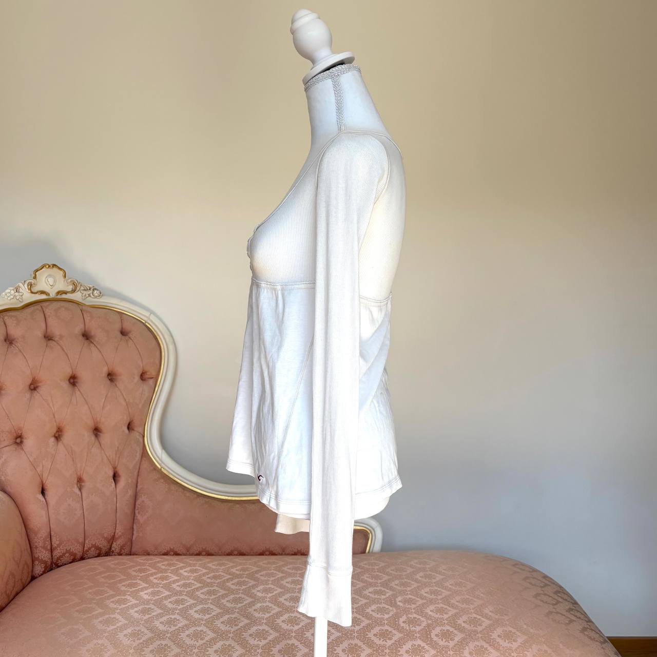 Hollister babydoll top long sleeve henley shirt with buttons white top winter fairy vintage y2k coquette