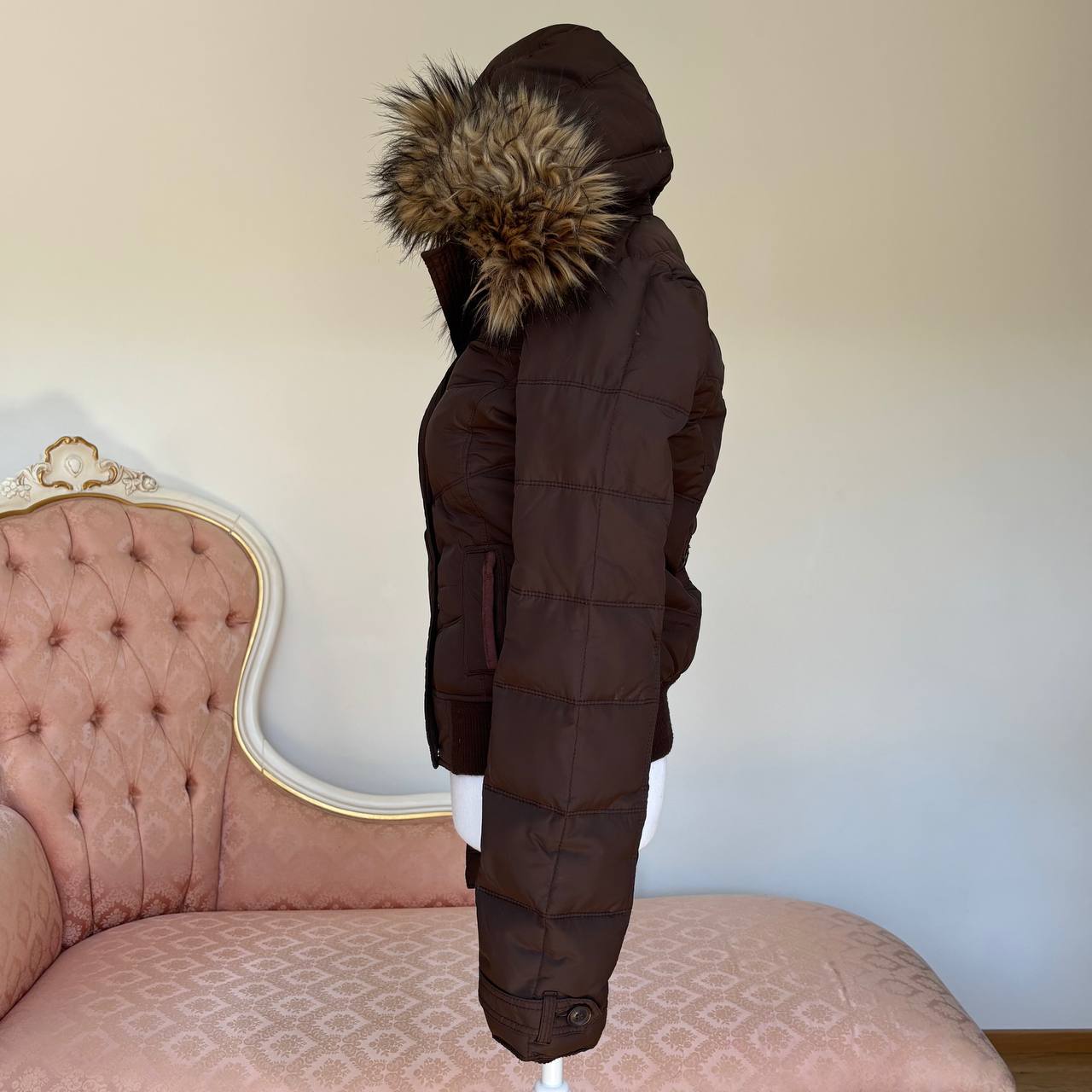 Hollister puffer coat zip-jacket bomber with fur hood in chocolate brown vintage y2k