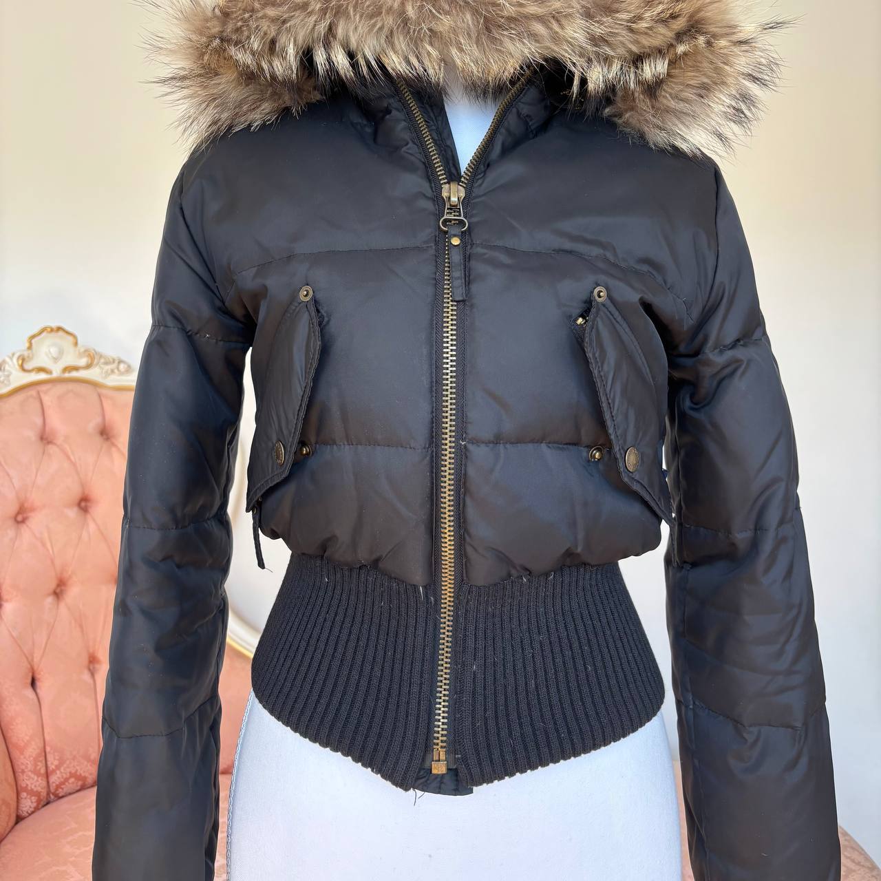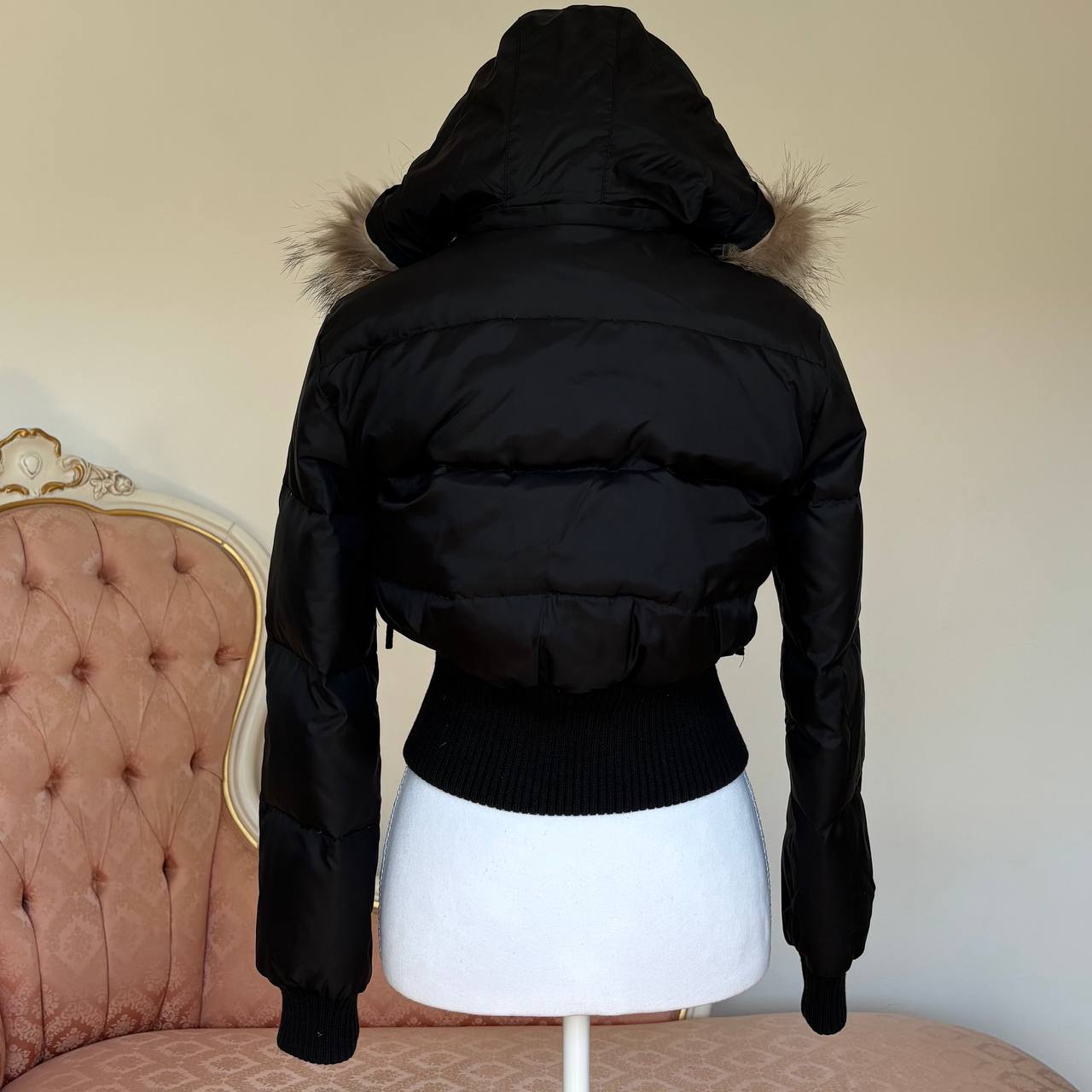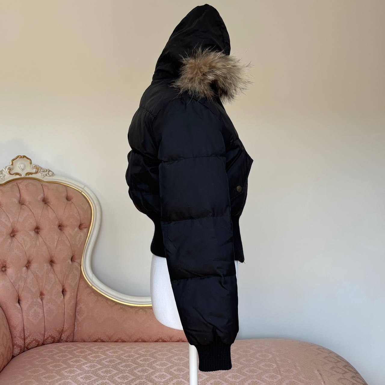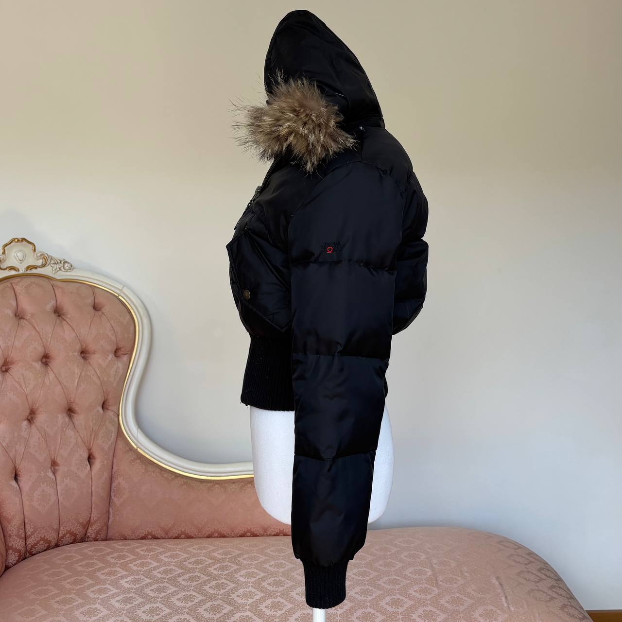 Italian New Born puffer coat zip-jacket bomber with fur hood in black vintage y2k