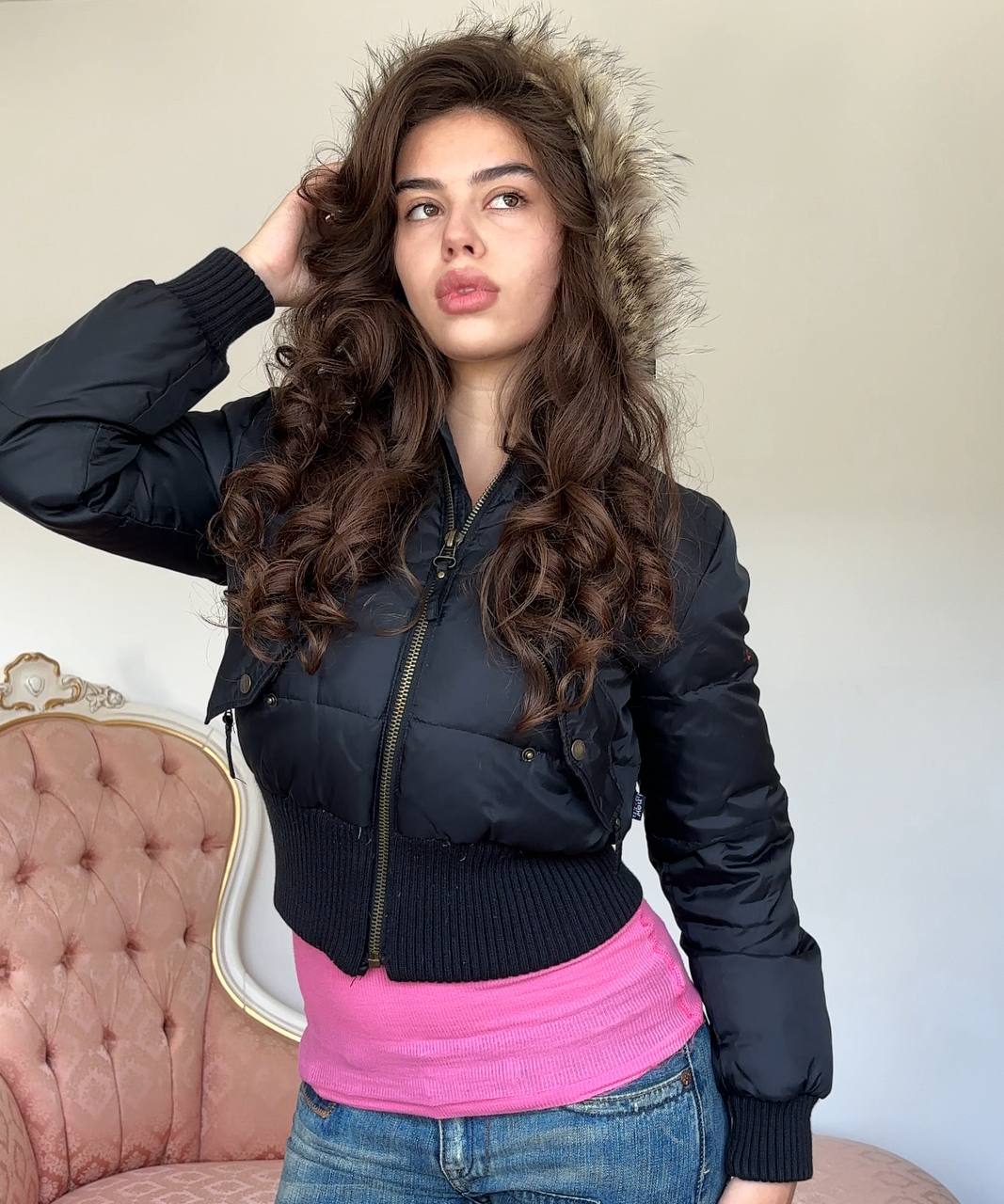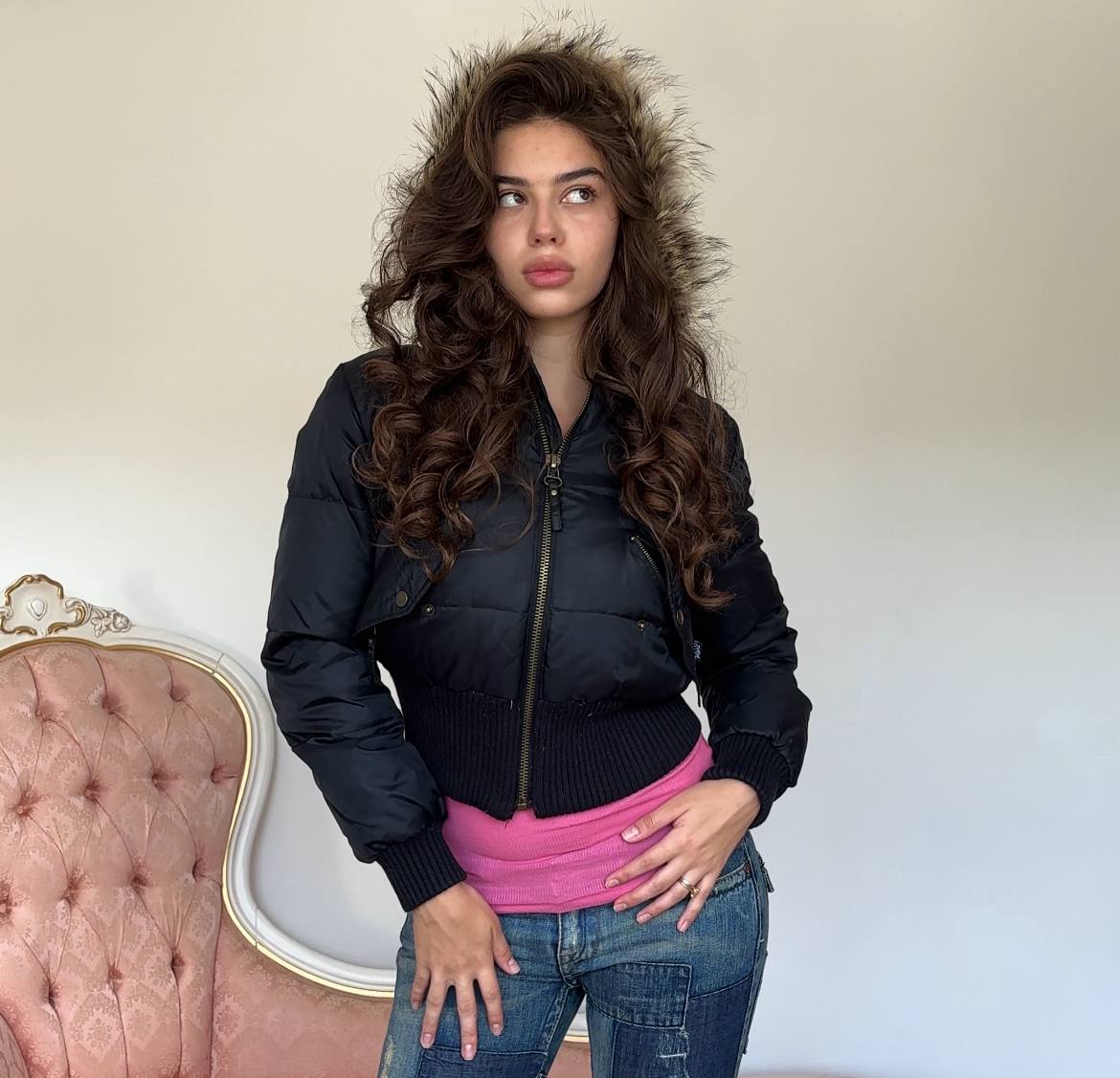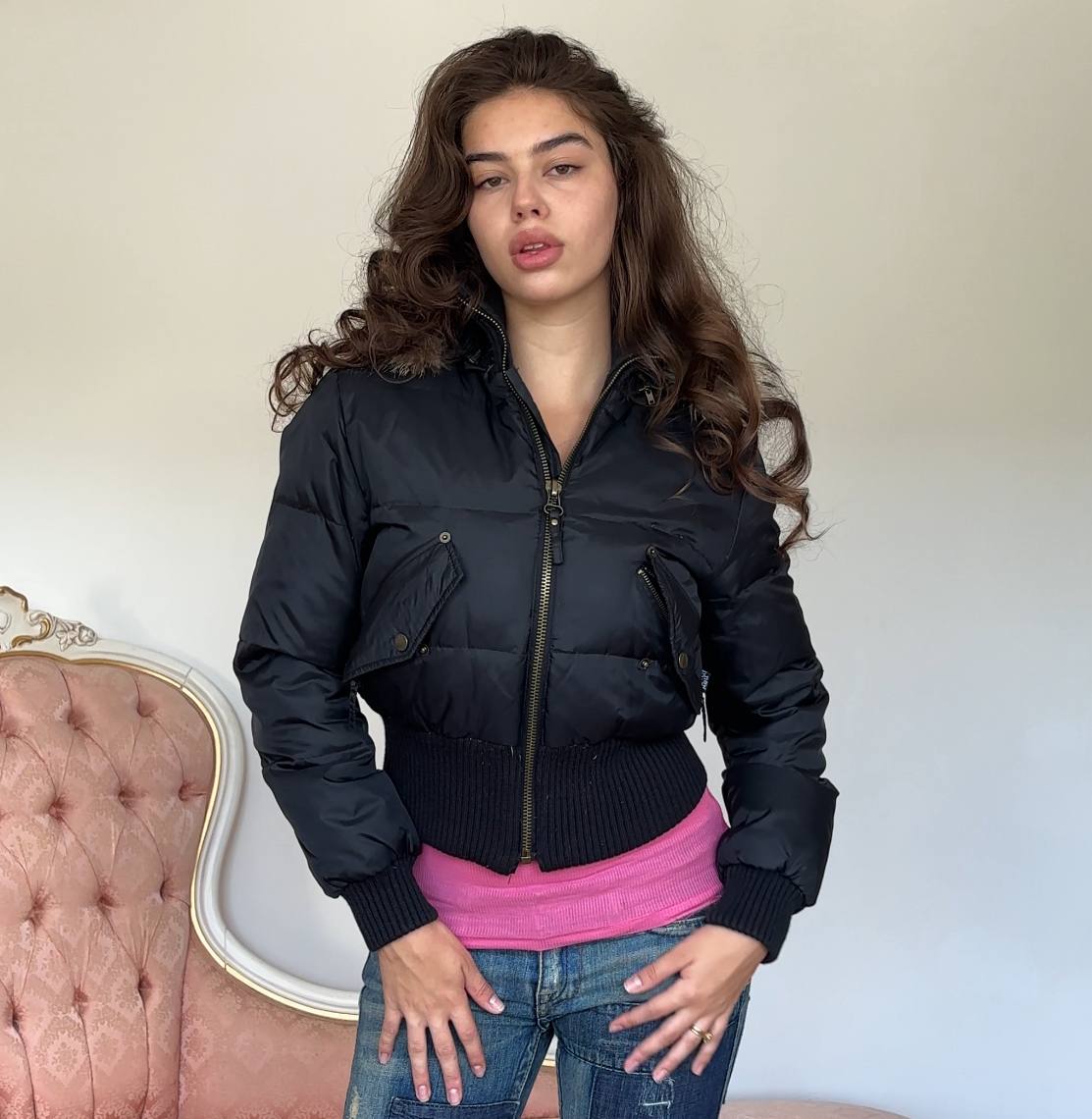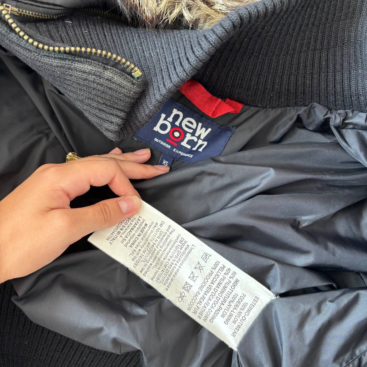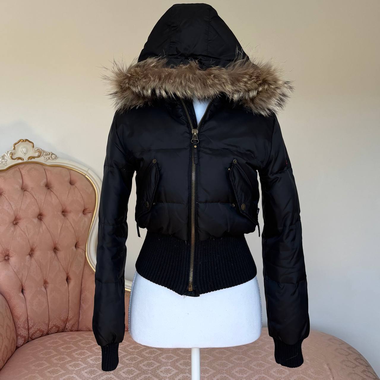 Italian New Born puffer coat zip-jacket bomber with fur hood in black vintage y2k