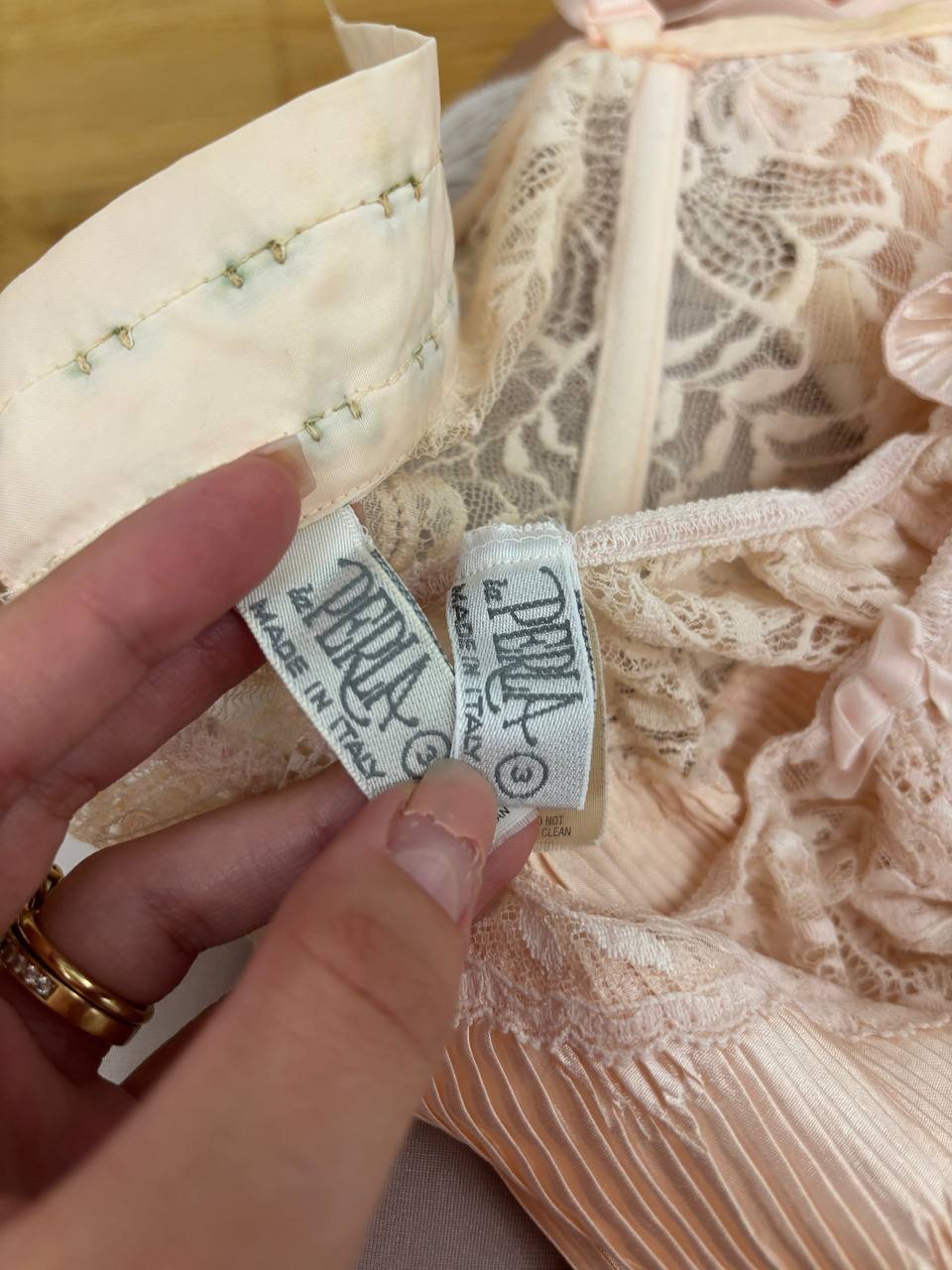 La Perla nightwear set pink transparent satin lace vintage shorts and corset cami top y2k coquette