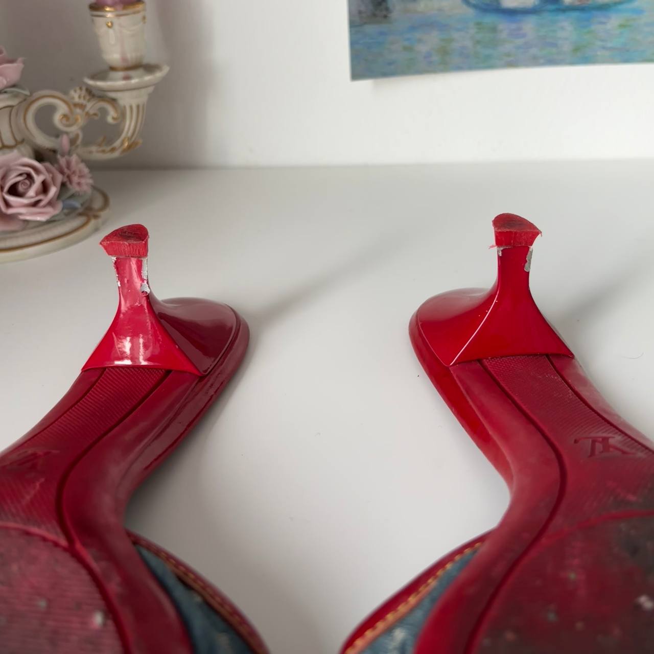 💋 insanely beautiful Louis Vuitton jeans monogram designer heels mules sandals with red bows