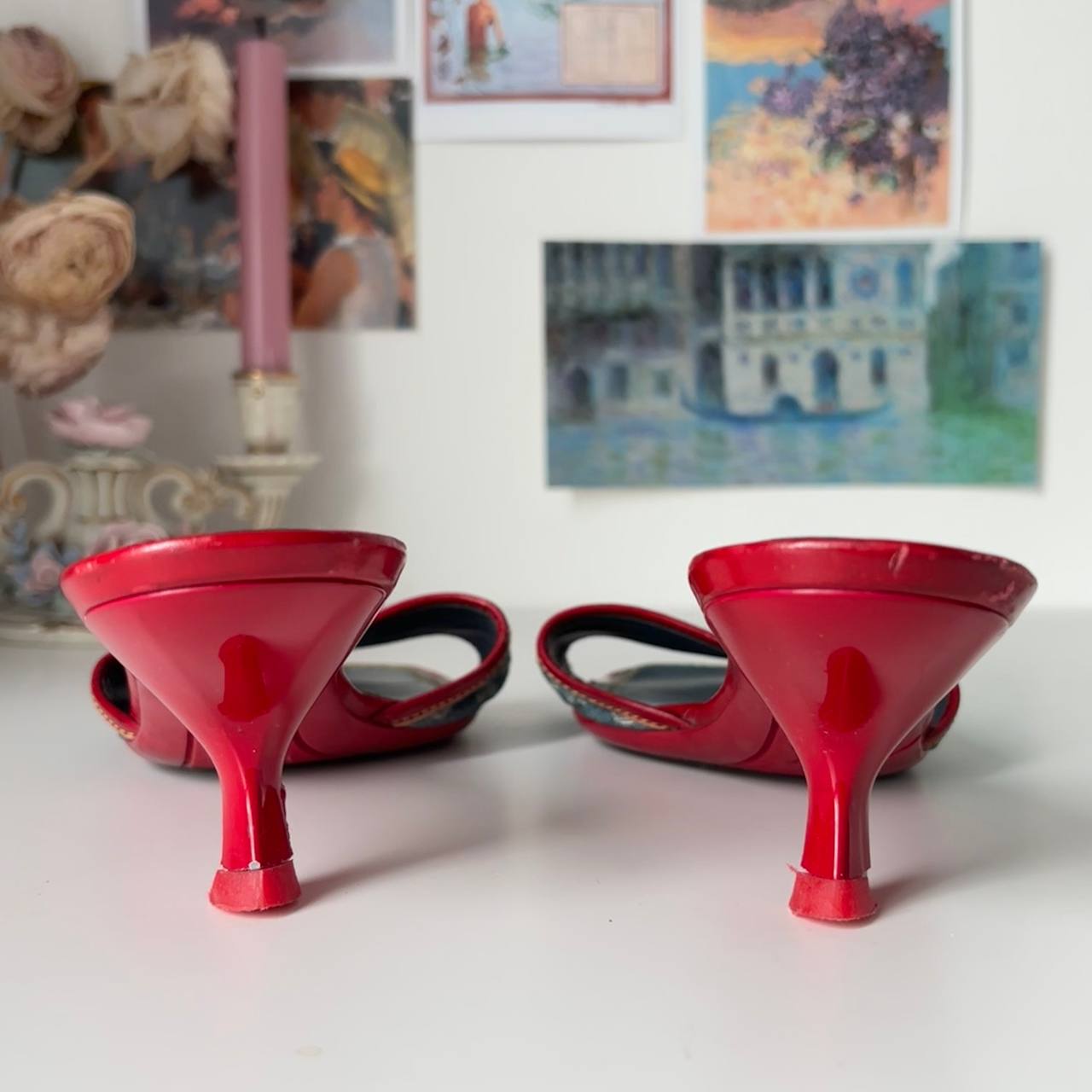 Louis Vuitton mules shoes heels jeans blue monogram vintage y2k mules kitten heels with red details