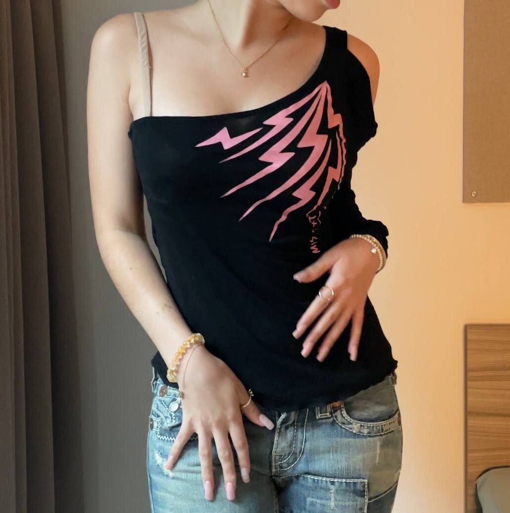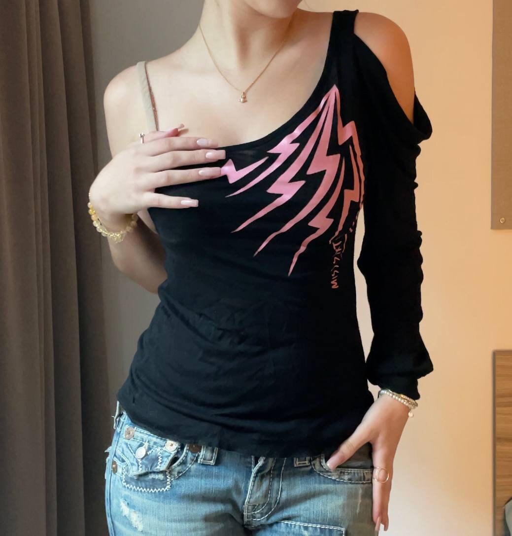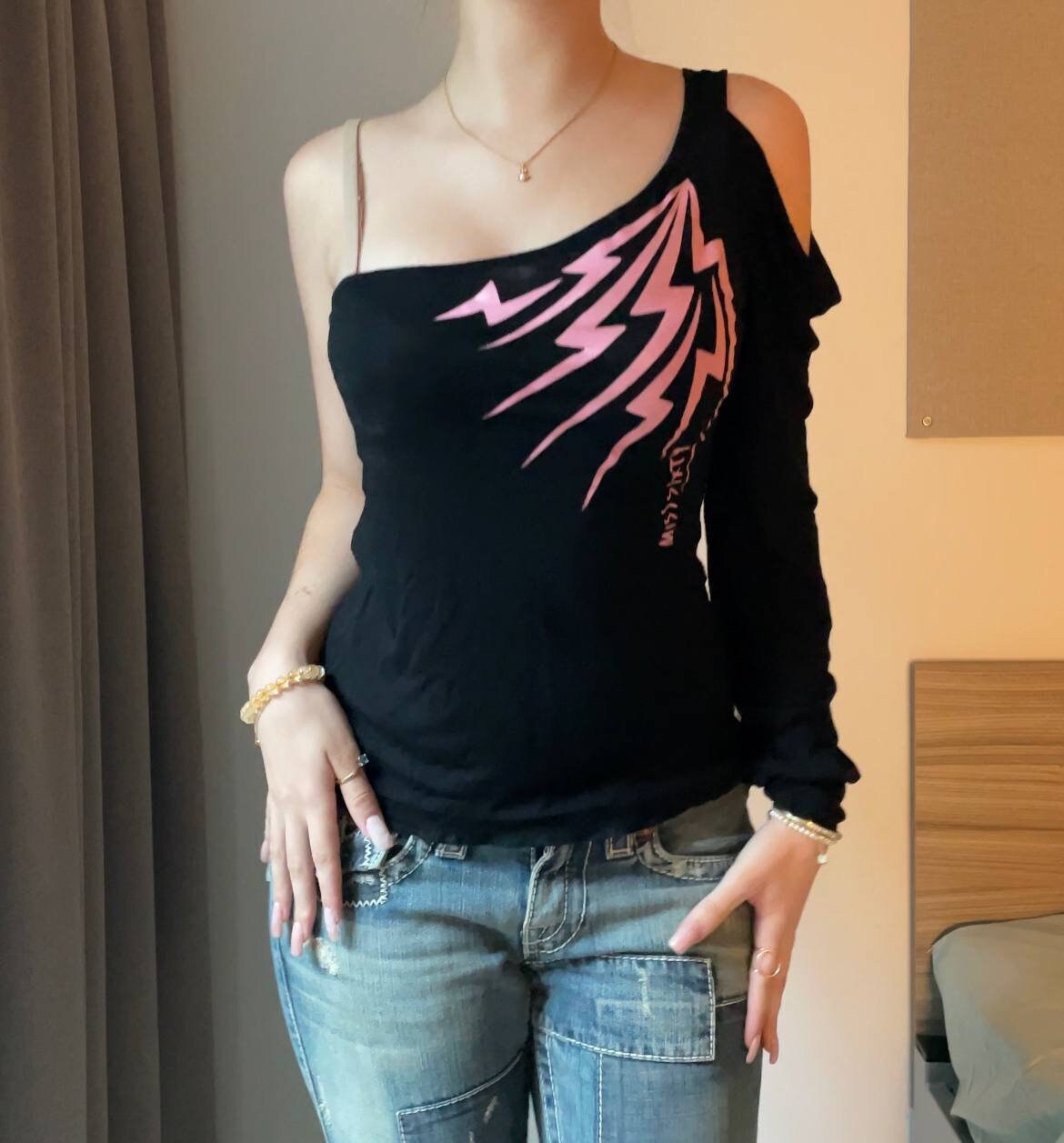 • unique top from Miss Sixty Luxury collection with one long sleeve and a graphic y2k print