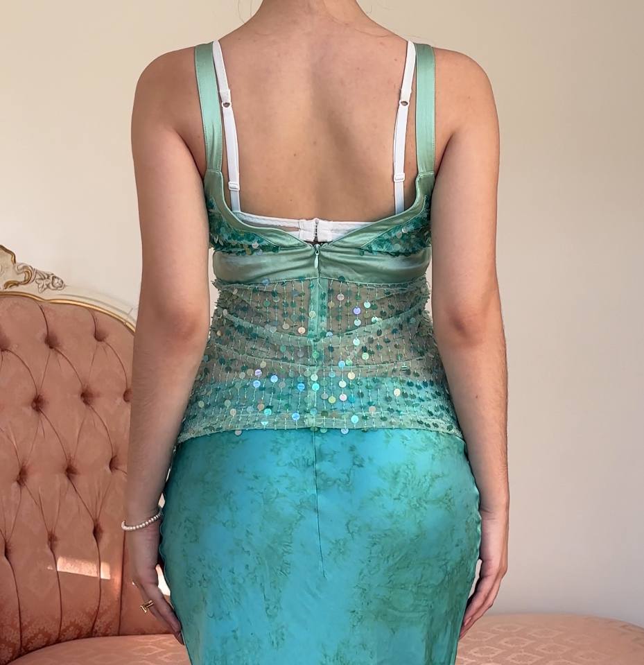 Pinko cami top embellished bedazzled mesh summer mint green blue early 2000s y2k
