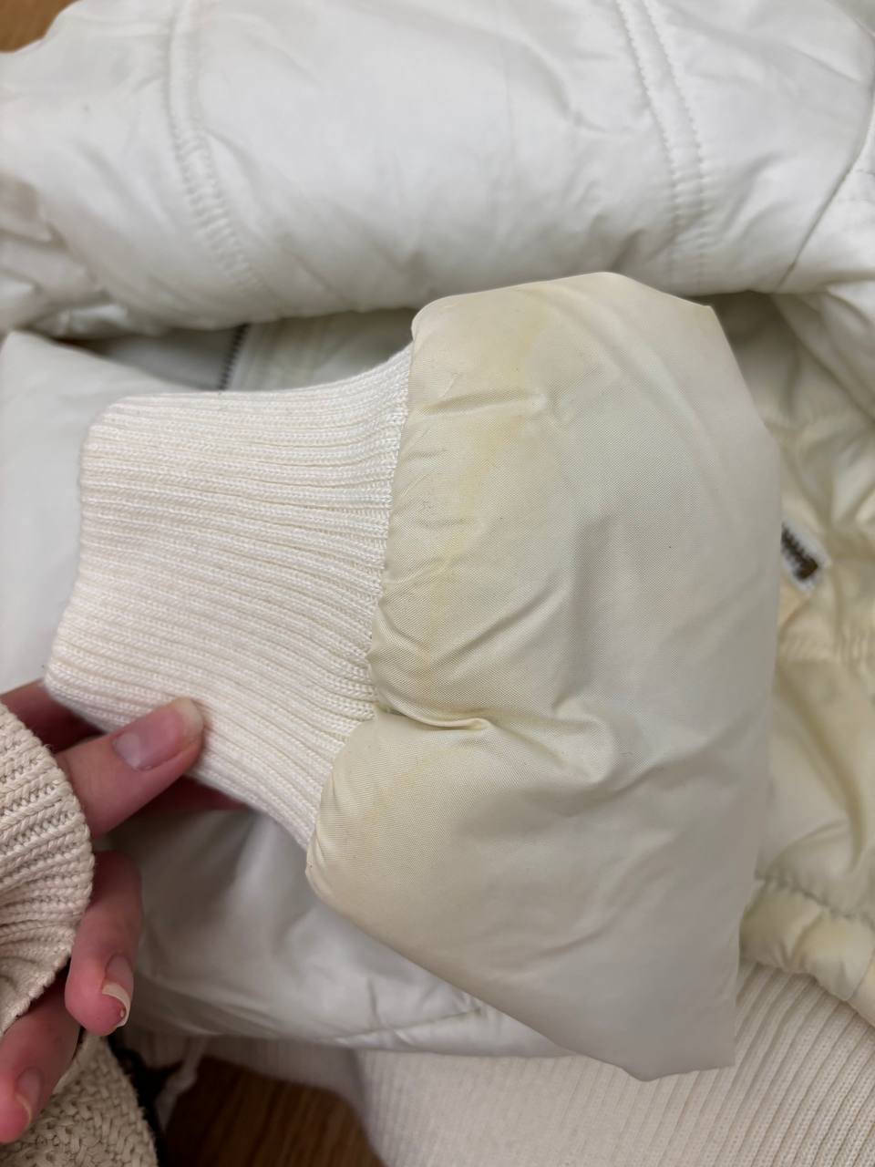 Regular Display vintage coat zip-jacket bomber with fur hood in cream white with a corset back