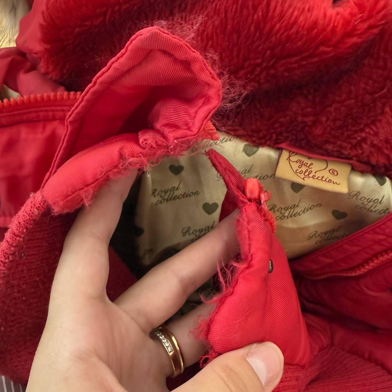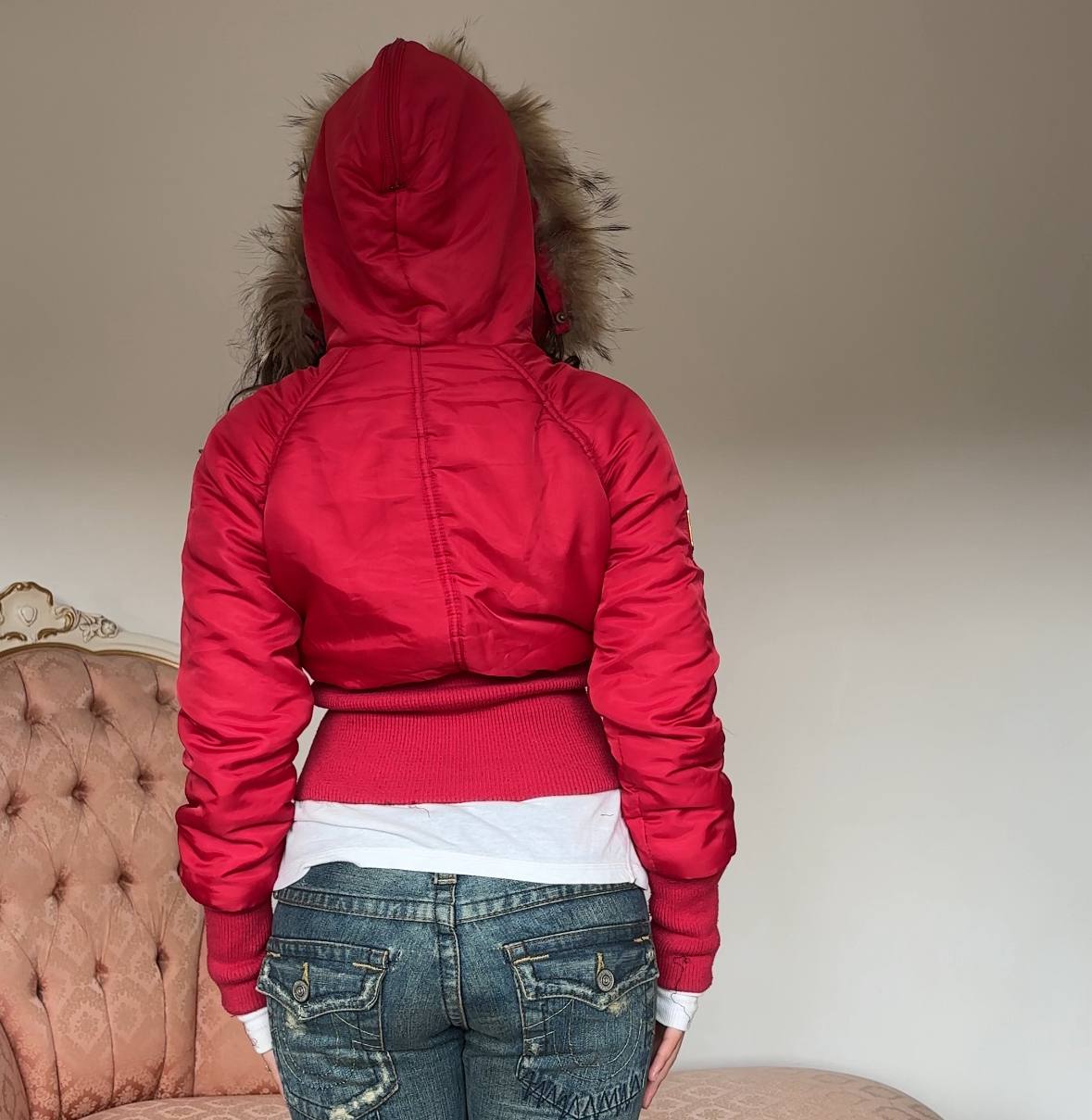 Royal Collection corseted puffer coat zip-jacket bomber with fur hood in red vintage y2k