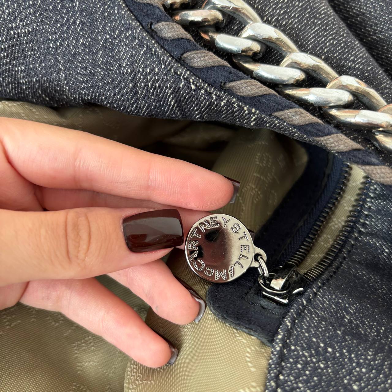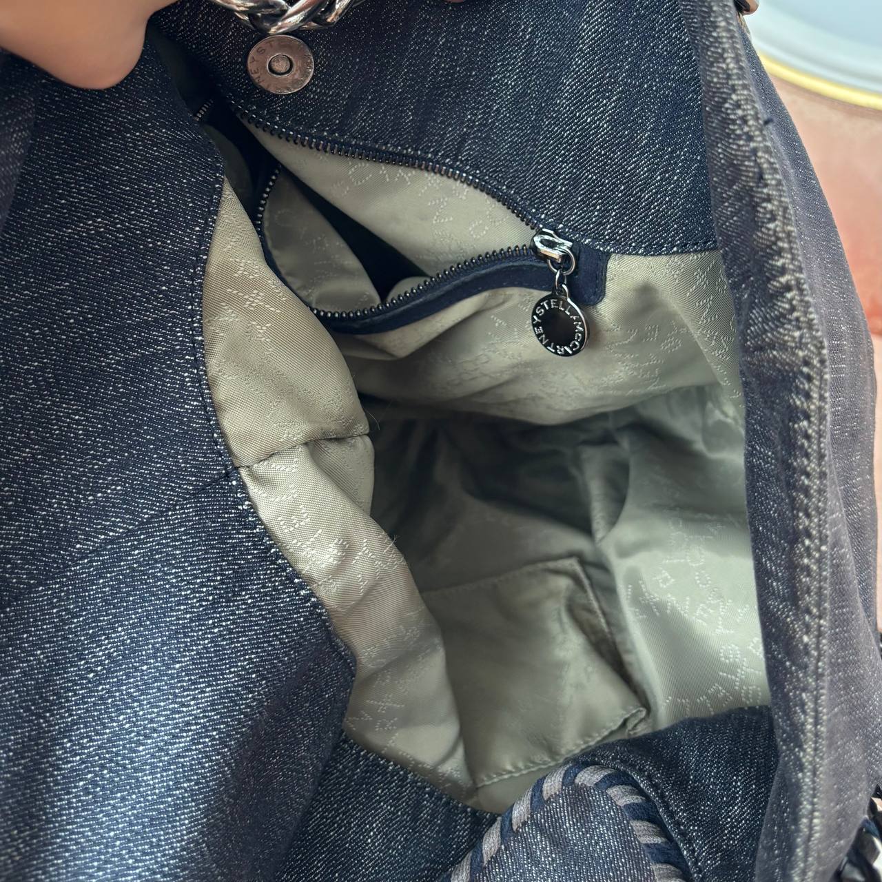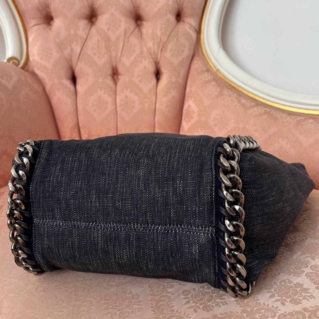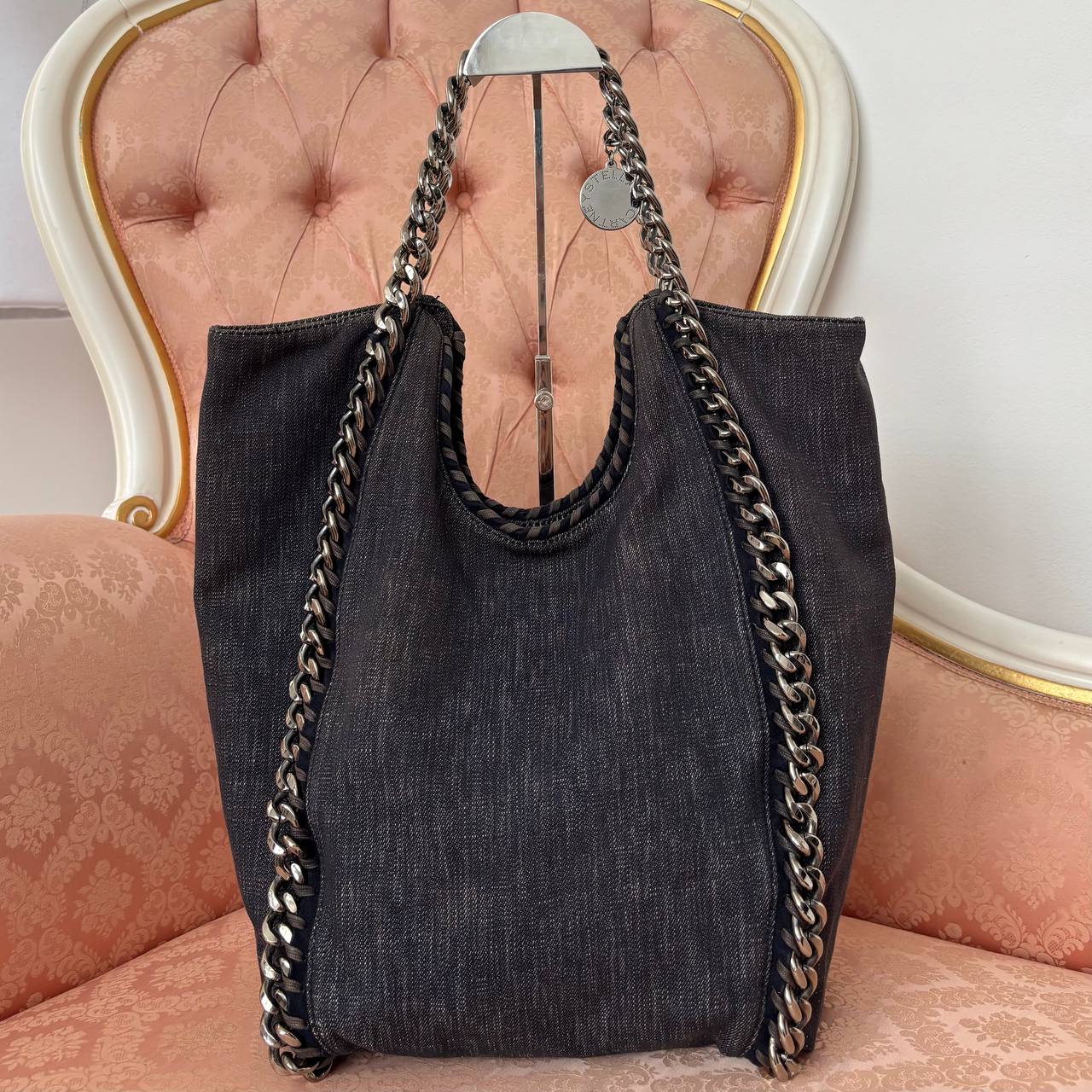 Stella McCartney shoulder bag tote bag cloth denim dark jeans silver chain rock chic boho chic 2000 y2k